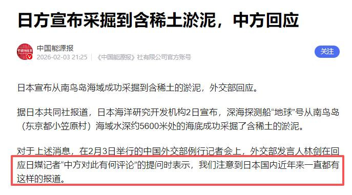 这份淡定绝非敷衍,背后是对日本相关消息的透彻了解——所谓深海稀土淤泥,根本不是什么新发现,而是翻炒十几年前的老谎言。